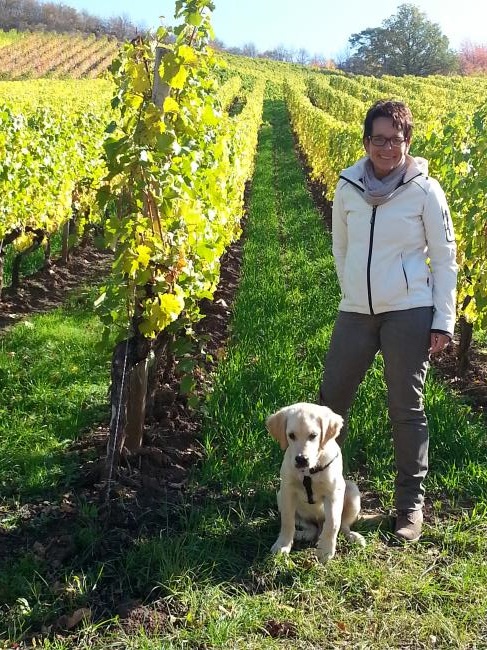 Mit Frauchen in den Weinbergen
